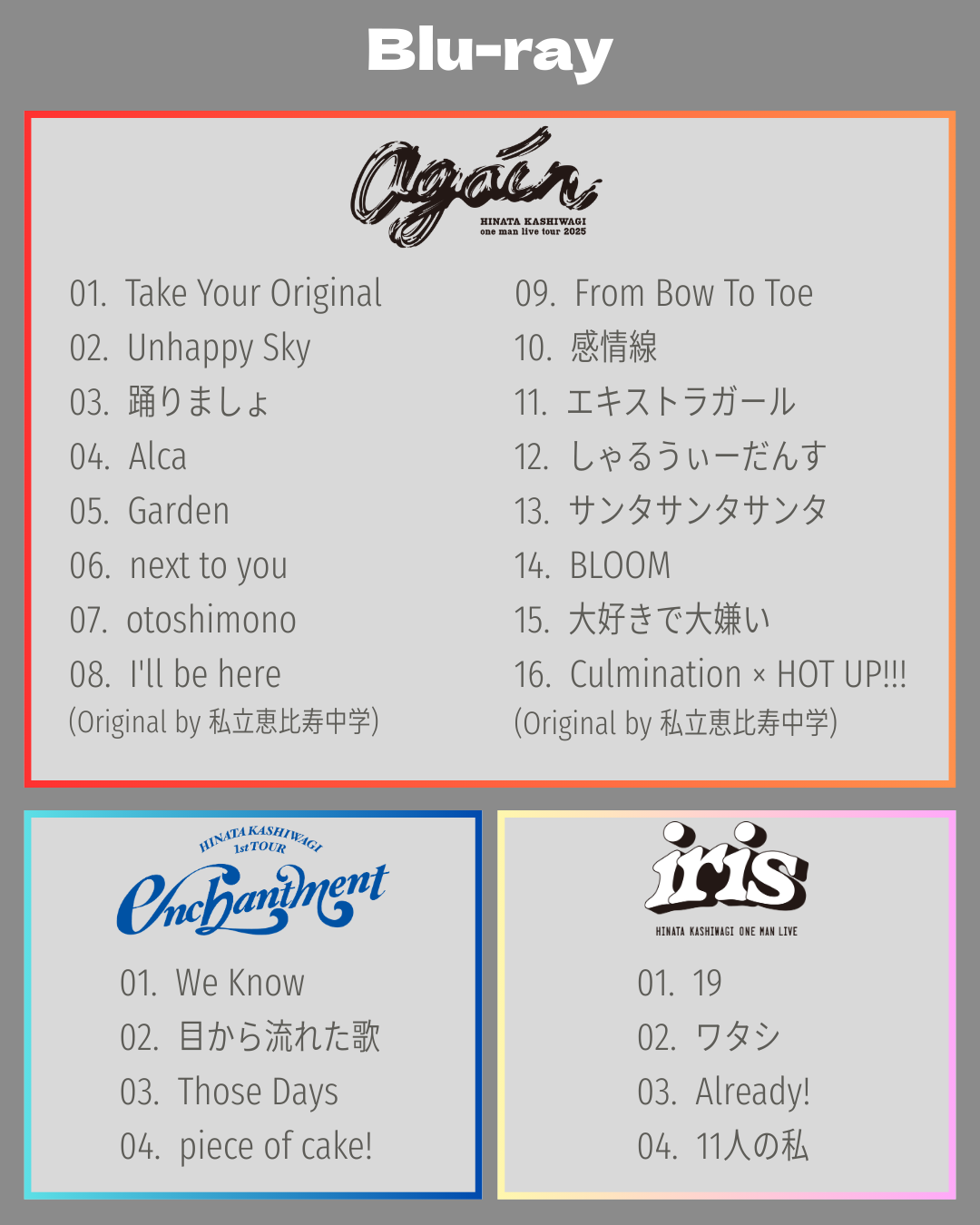 また、シンガーソングライター・MHRJが提供した「わたしのわたしによるわたしのためのわたし」をはじめ、ライブのみで披露されファンの間で人気を集めてきた「otoshimono」、さらに私立恵比寿中学在籍時にソロ曲として歌唱され、本作で初のCD音源化となる「Take Your Original」など、多彩な楽曲が収録される。
